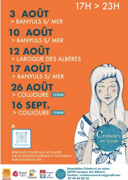 - « Créateurs en scène » est une association d’une vingtaine d’artisans locaux qui maitrisent des savoir-faire très variés. Ils présentent leurs réalisations au cours de rendez-vous festifs organisés dans plusieurs villages catalans de 17h00 à 23h00.